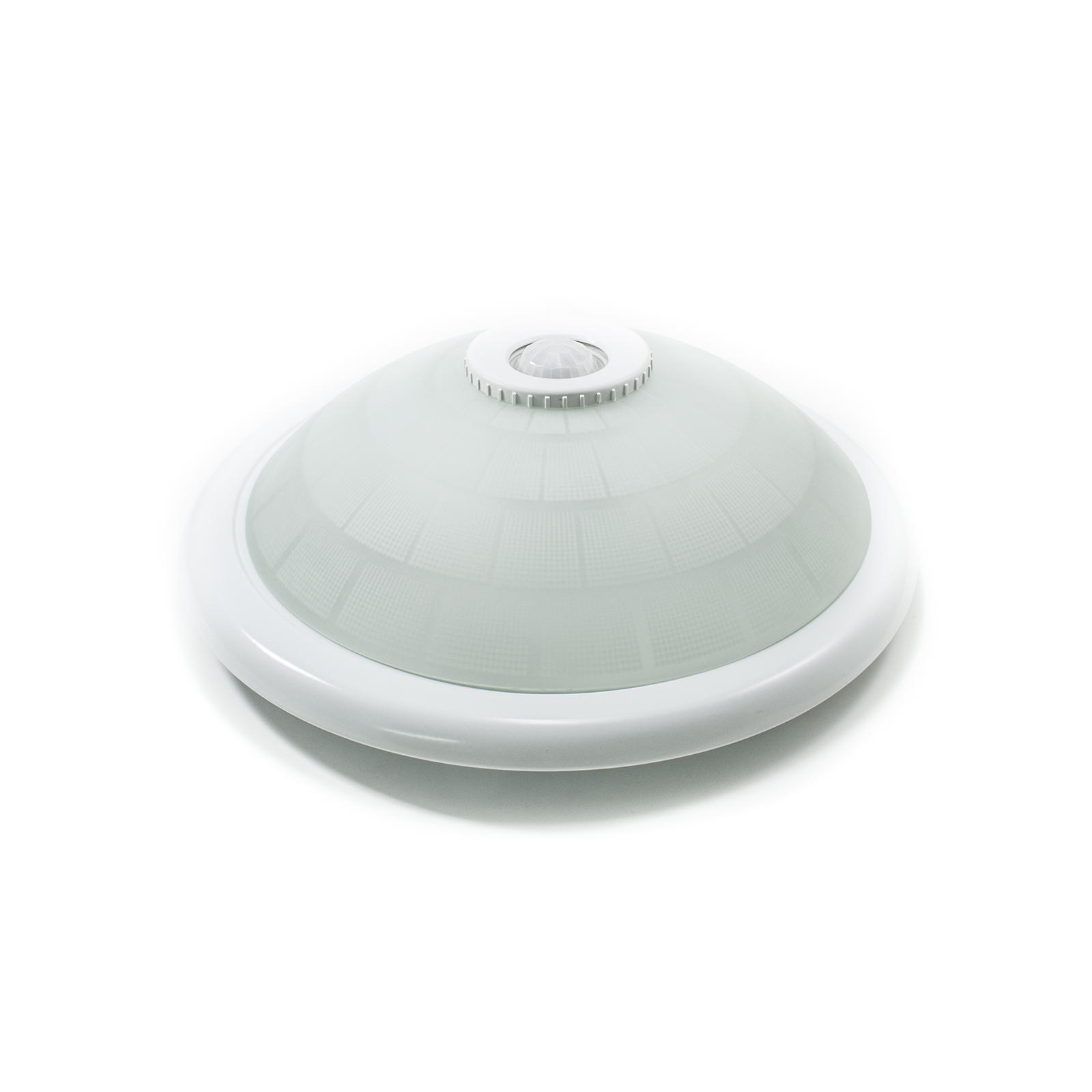 Plafoniera con sensore di presenza crepuscolare integrato.